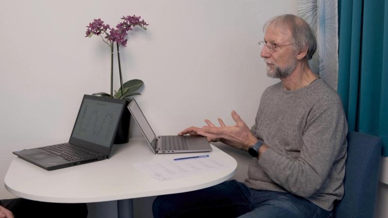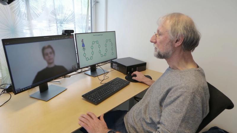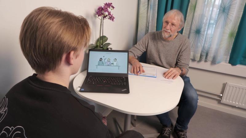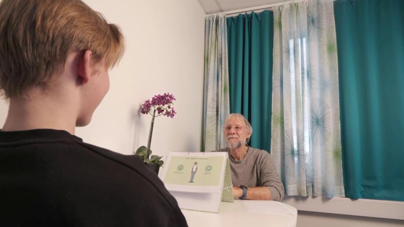 3. Pasienten ser illustrasjoner på pc, behandler har støtteark på papir