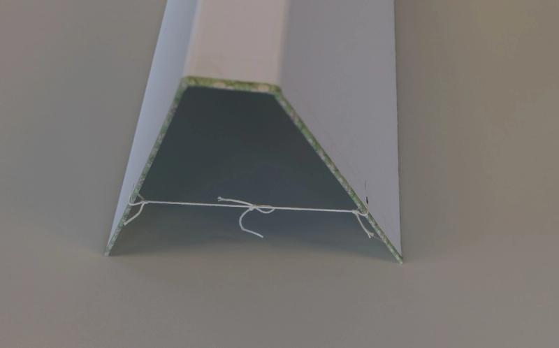 4. Klipp opp 4 lengder à 20 cm med hyssing. Knyt fast den ene enden av hyssing-lengdene på hver av de fire punktene i permen.