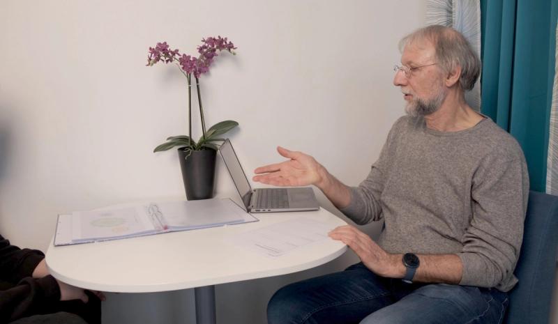 2. Behandler bruker pc, pasienten får se illustrasjonene på papir
