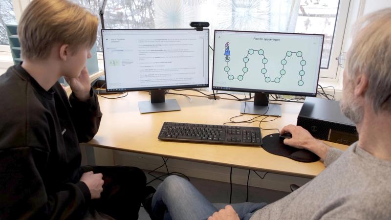 8. To-skjermløsning: Behandler har støtteark på den ene skjermen og pasienten fremvises illustrasjoner på den andre